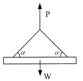 2.如图所示,用吊索起吊重为W的构件,两斜索与构件所成的角度为?,吊点对称,则斜索内力最大时的角度?为( )。