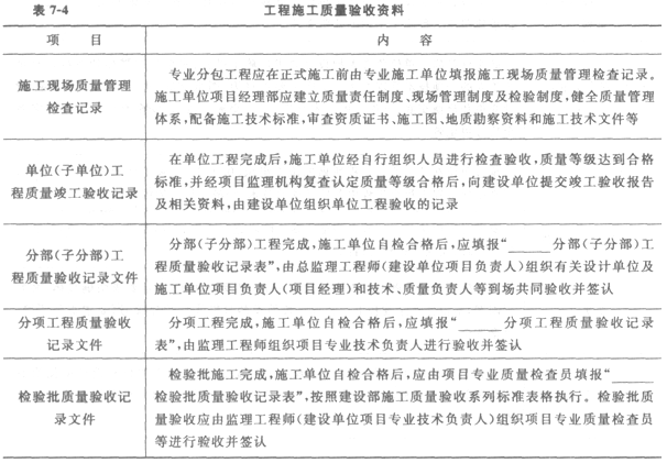 (1)验收时,施工单位必须附有关分项工程质量验收及测试资料,包括原材料试(化)验单、质量验收记录、出厂合格证等,以备查验。