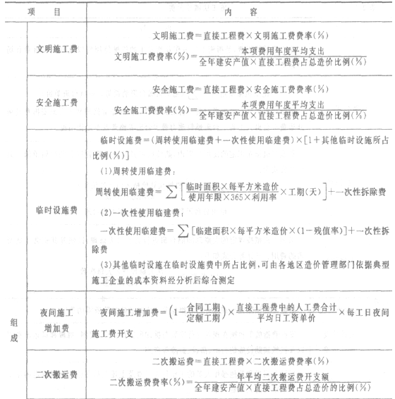 【答案】B。本题考核的是建筑安装工程费中的措施费。措施费是指为完成工程项目施工,发生于该工程施工前和施工过程中非工程实体项目的费用,一般包括下列项目:①环境保护费;②文明施工费;③安全施工费;④临时设施费;⑤夜间施工增加费;⑥二次搬运费;⑦大型机械设备进出场及安拆费;⑧混凝土、钢筋混凝土模板及支架费;⑨脚手架费;⑩已完工程及设备保护费;11施工排水、降水费。