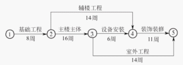 【试题解析】该网络计划中,主要控制对象有基础工程、主楼主体、设备安装、装饰装修。计划工期为41周。