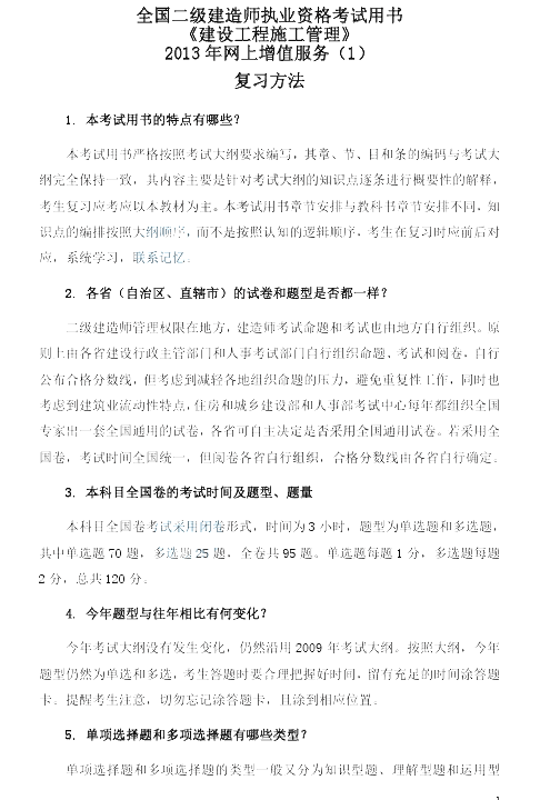 2013年二级建造师施工管理正版教材增值服务(一)