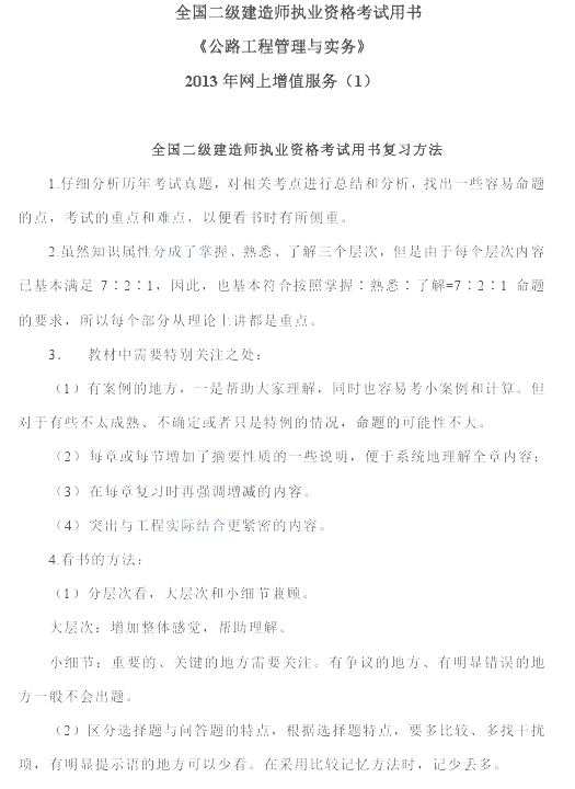 摘要 2013年二级建造师公路实务正版教材增值服务(一)