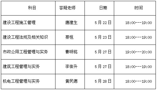 二级建造师考前最后的直播答疑时间安排已经公布,请查看表格。