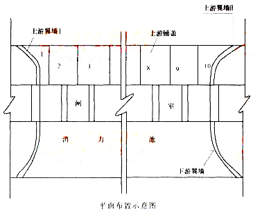 某水闸工程建于土基上,共10孔,每孔净宽10m;上游钢筋混凝土铺盖顺水流方向长15m,垂直水流方向共分成10块;铺盖部位的两侧翼墙亦为钢筋混凝土结构,挡土高度为12m,其平面布置示意图如下图所示。