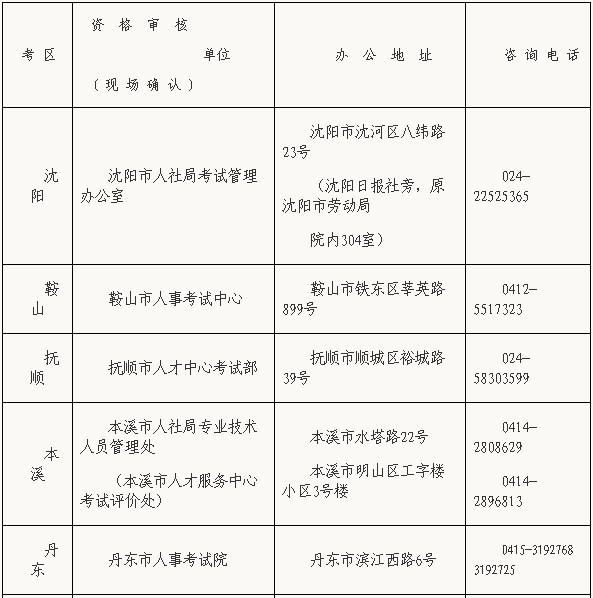 (1)资格审查工作按属地化原则进行。各市、绥中县报考人员的资格审查由所在市、绥中县人事职称管理部门或人事考试部门(详见附件)负责;驻沈中、省直单位报考人员的资格审查由省人事考试局负责。资格审查截止时间为2014年2月21日。