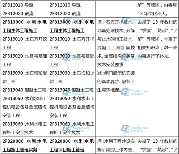 6、2014二级建造师新教材对比(水利水电实务):点击查看详情