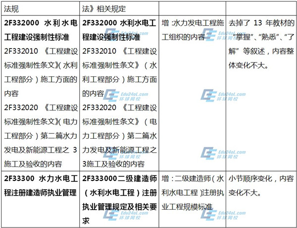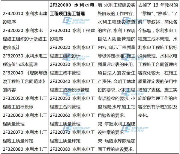 2014年二级建造师《水利水电工程管理与实务》教材变化分析(知识体系)