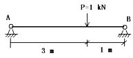 但这道题也可不必计算,由分析得答案。因支座A、B反力总和为1 kN,故RA不可能为1kN;又由荷载P不作用于跨中,RA与RB不应相等,故RA不可能是1/2 kN.剩下3/4与1/4中挑一个,显然RA离P作用点较远,受力应小一点,故只有1/4是正确的,答案应为D.