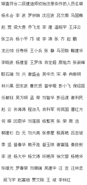 根据《注册建造师管理规定》(建设部令第153号)和《云南省建设厅关于印发〈云南省二级建造师注册实施办法〉的通知》(云建建〔2007〕407号)的有关要求,经审核,第7批申请二级建造师初始注册的杨永会等89人符合二级建造师初始注册条件。现通告如下(名单详见附件)。