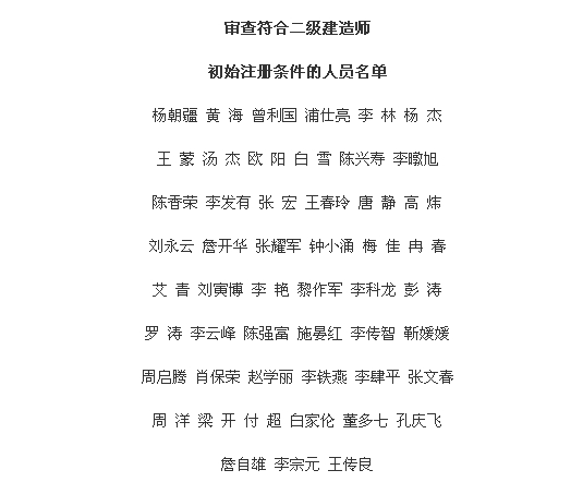 根据《注册建造师管理规定》(建设部令第153号)和《云南省建设厅关于印发〈云南省二级建造师注册实施办法〉的通知》(云建建〔2007〕407号)的有关要求,经审核,第9批申请二级建造师初始注册的杨朝疆等51人符合二级建造师初始注册条件。现通告如下(名单详见附件)。