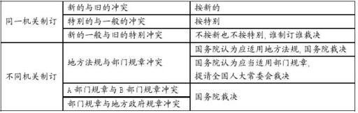 3.部门规章之间、部门规章与地方政府规章之间:由国务院裁决