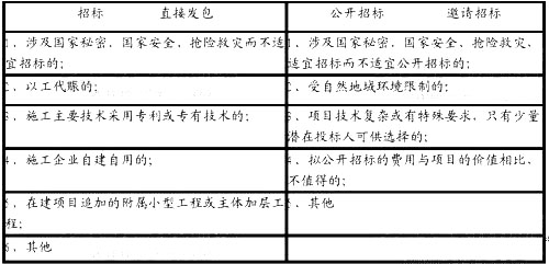 (2)可以不招标的项目(不宜招标---直接发包)、公开招标、邀请招标