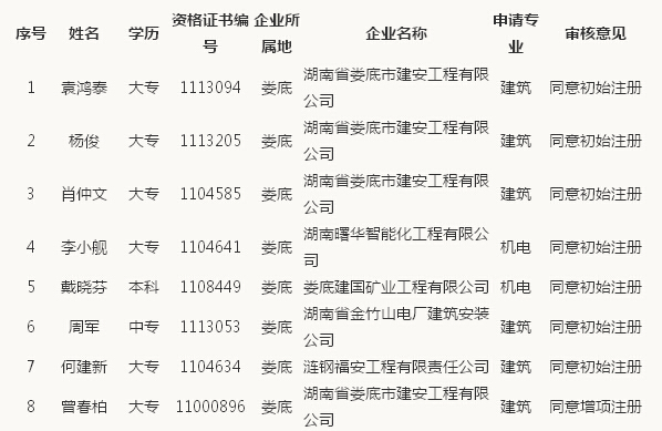 根据《建筑法》、《注册建造师管理规定》及《湖南省住房和城乡建设厅关于委托下放建筑业部分行政许可审批工作的通知》(湘建建函【2014】25号)等相关规定,我局组织了2014年第五批二级建造师初始注册、增项注册评审。评审结果现予公示,公示期为2014年7月11日至2014年7月18日。