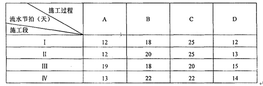 事件一:施工单位将施工作业划分为A、B、C、D四个施工过程,分别由指定的专业班组进行施工,每天一班工作制,组织无节奏流水施工,流水施工参数见下表: