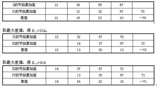 (2)总工期T=∑K+TN=23+20+24+71=138(天)满足合同工期的要求。
