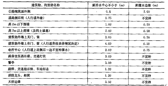 【解析】树木与建筑、构筑物的平面距离见下表。