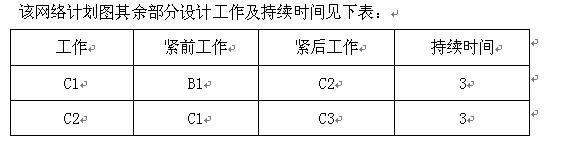 1、按背景资料给出的计划工作及持续时间表补全网络计划图的其余部分。(请将背景中的网络图复制到答题纸上作答,在试卷上作答无效)。