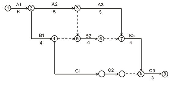 某项目部针对一个施工项目编制网络计划图,下图是计划图的一部分:
