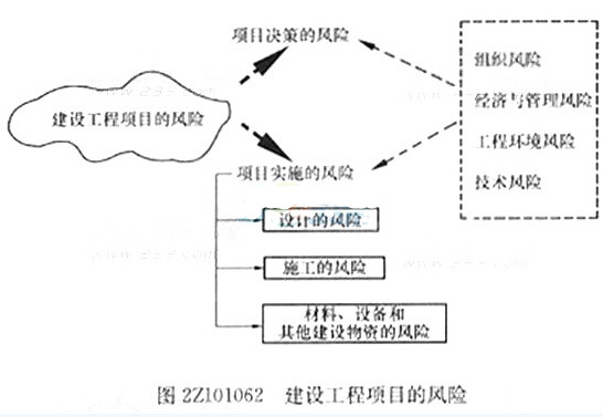 3、建设工程项目的风险包括项目决策的风险 和项目实施的风险 ,项目的风险主要包括设计的风险、施工的风险以及材料、设备和其他建设物资的风险等。