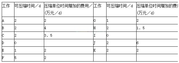 32 某施工单位编制的某工程网络图,如图2-11所示,网络进度计划原始方案各工作的持续时间和估计费用,见下表。