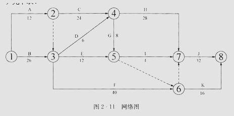 1.在图2-11中,计算网络进度计划原始方案各工作的时间参数,确定网络进度计划原始方案的关键路线和计算工期。