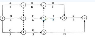 本题涉及的考点是双代号网络计划最迟开始时间和最迟完成时间。最迟开始时间等于最迟完成时间减去该工作持续时间;最迟完成时间等于各紧后工作的最迟开始时间