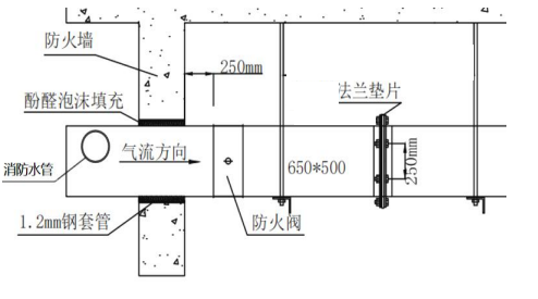 B公司在地下主体结构完工后立即进场施工,施工过程中通风班组为了节省材料,没有按照设计路线施工,致使一排烟风管挡住了消火栓供水支管路线,引起水班组不满,项目经理通过让通风班组在风管开孔,水管从风管内部穿过,用密封胶封堵。如下图所示。质检员在巡视过程中发现风管的施质量不符合规范要求,通知施工作业人员整改。