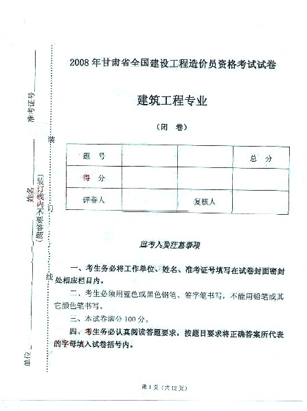 当前位置: 首页 > 二级造价工程师 > 二级造价工程师历年试题 > 2008年甘肃建设工程造价员考试试卷(1)