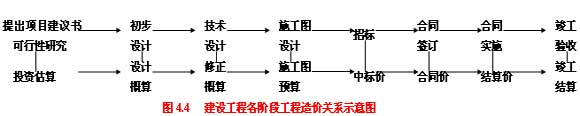 6)第六阶段:费用计算。工程实物量――直接工程费――直接费、间接费、利润及税金――工程造价