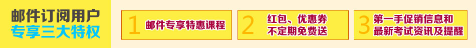 1、环球网校邮件订阅服务完全免费,我们每月为您精心推荐各种考试资讯以及课程促销信息。给您更多安心,更多优惠,更多便利!