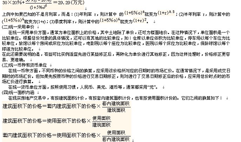 选取了可比实例之后,应先对这些可比实例的成交价格进行换算处理,使其之间的口径一致、相互可比,并统一到需要求取的估价对象的价格单位上,为进行后续的比较修正建立共同的基础。