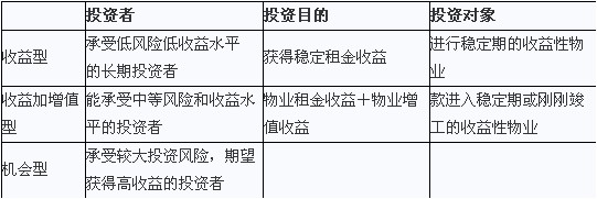 具备投资管理经验又风险偏好型的投资者-购买处于优良区位的新竣工甚至尚未竣工的物业,初始投资和收益水平低,增值潜力大