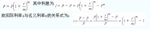 设名义利率为r,若年初借款为户,在一年中计算利息m次,则每一计息周期的利率为r/m,一年后的本利和为: