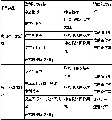 应该指出的是,由于开发投资项目与置业投资项目的效益费用特点不同,在实际操作中,两种类型投资项目的评价指标体系略有差异。