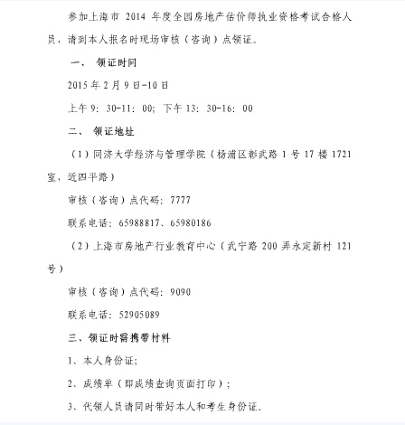 摘要 上海2014年房地产估价师考试合格证书领取通知如下: