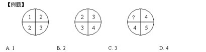 【解析】正确答案是3,根据前两个图形,可以看出规律为:1+3=2+2;2+4=3+3;因此,?+5=4+4。所以答案为C。
