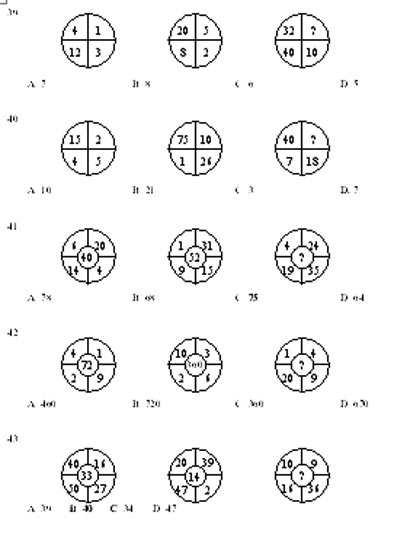 (二)每题图形中的数字都包含一定的规律,请你总结前两个图形中数字的规律,从四个选项中选出你认为问号应该代表的数字。