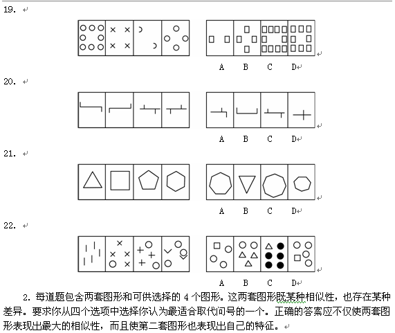 1.每道题目的左边4个图形呈现一定的规律性。你需要在右边所给出的备选答案中选出一个最合理的正确答案。每道题只有一个正确答案。