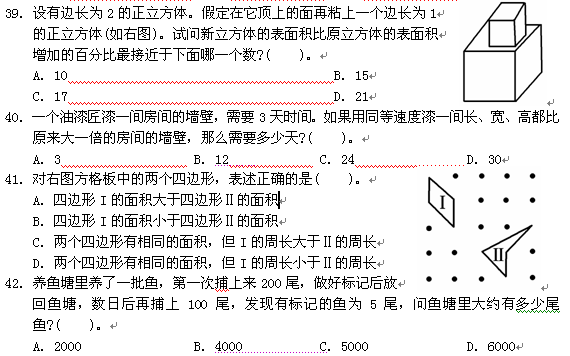 每道试题呈现一道算术式,或表述数字关系的一段文字,要求你迅速、准确地计算出答案。你可以在草稿纸上运算。
