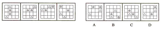 【解答】本题正确答案为D。两个五角星分别在两条对角线上,三角形移动的路径为最外围的网格线。因此正确答案为D。