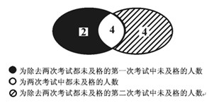 【解析】B。两次考试都没有及格的人数=学生总数-两次都及格的人数-第一次未及格的人数-第二次未及格的人数=32-22-[32-22-(32-26)]-[32-22-(32-24)]=32-22-6=4。