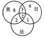 【解析】B。此题应该用文氏图法,将能教英语、日语、法语的教师分别设为不同的集合。先设所有集合的交集为2,依题意得文氏图(见下图)。