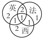 上图的含义为只懂英语、法语和西班牙语的人数分别人2、1和2,共5人,而一种语言都不会说的人数为12-(2+2+1+1+1+1+2)=2(人),5-2=3(人)。