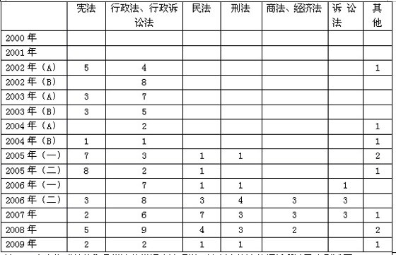 注:1.本表格“其他”是指法律常识中法理学、法制史等法律领域所涉及个别试题。