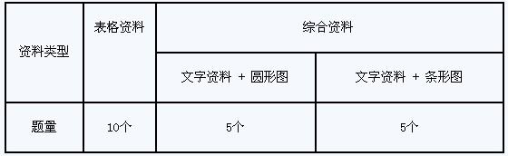 表1:2009年山东省公务员考试行测资料分析资料类型统计表