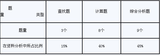 2.题目设置趋向于综合分析题目,注重对整体资料的把握;计算题计算难度降低,注重计算技巧的运用;查找题进一步减少,不会出现一眼就能看出答案的题目。