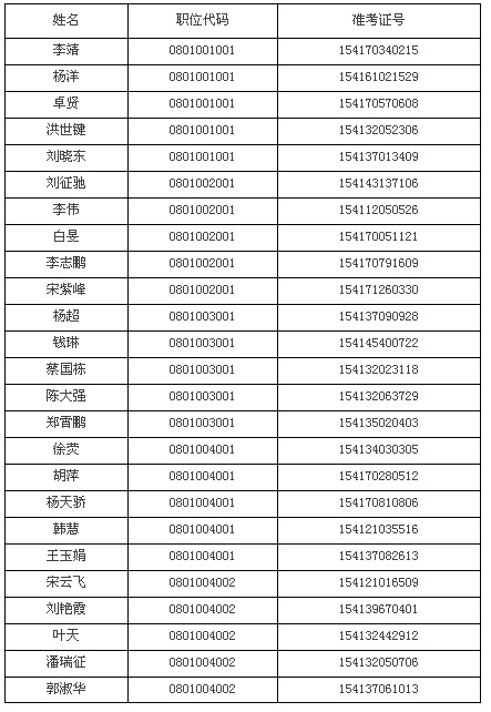 五、附:参加面试人员名单
