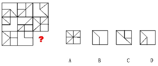 (解答:每行前两个图形叠加后,不同的部分就是第三个图形。因此,正确答案是D。)