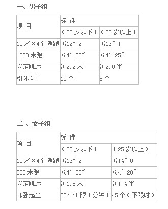 公安机关录用人民警察体能测评项目和标准