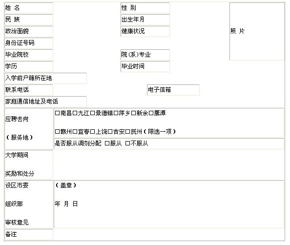 3、《2010年江西省选聘高校毕业生到村任职考试资格复审表》
